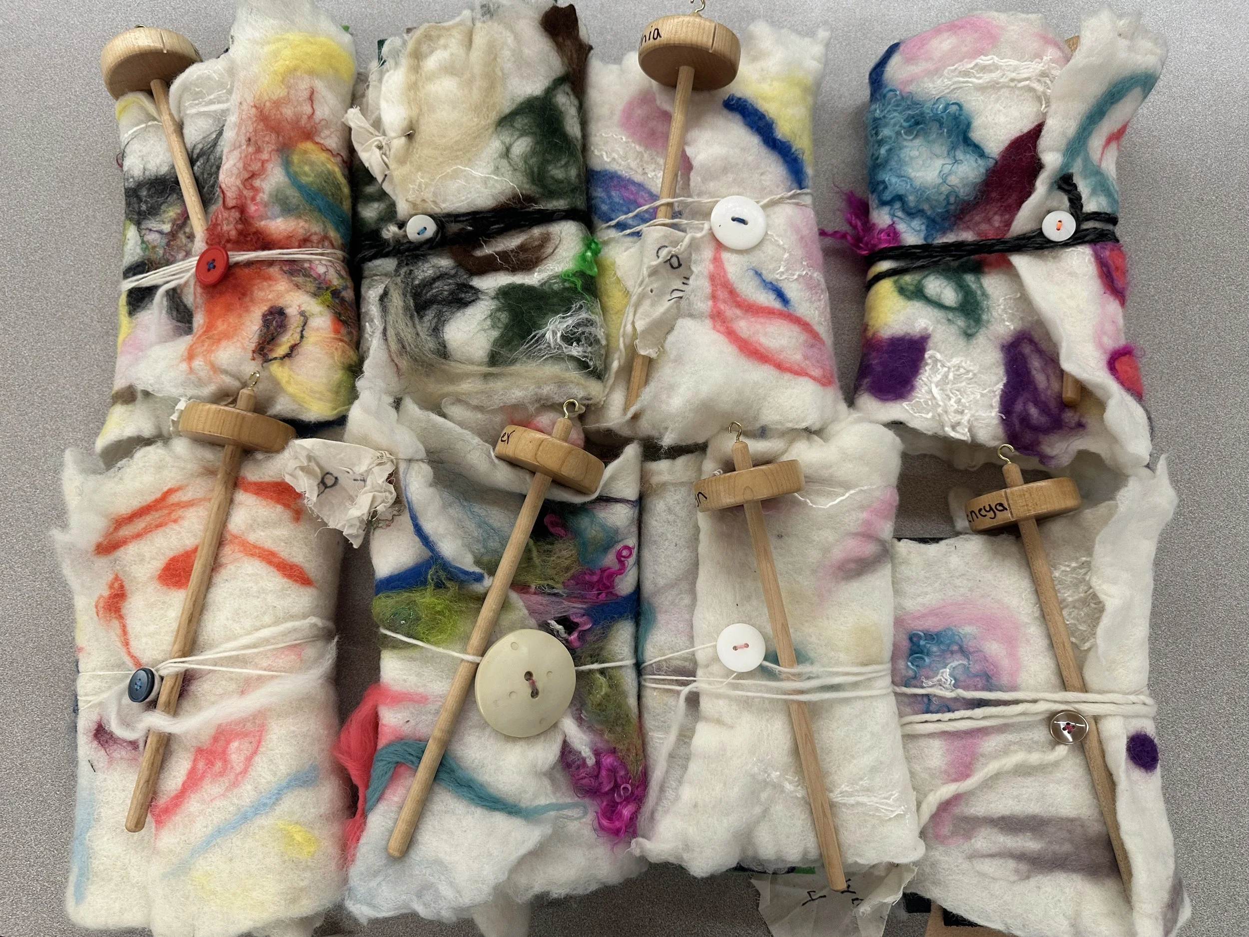 Students will learn all about fibers - what plants and animals they come from, what textures and properties they have, and what textiles they can be transformed into. Then, they will explore the fun and soapy process of wet felting to create their own colorful journal covers. They will use drop spindles to turn wool into yarn by themselves, to use as a cord binding the book together. Younger kids will decorate the journals with buttons and accessories, and older kids will needle felt designs on top.
